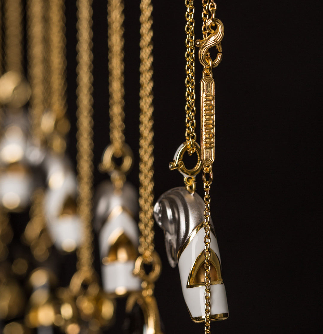 The theme of each piece varies widely, from body parts like lips, eyes and legs - typical surrealist motifs - to hearts, animals and robots. Naimah is driven by an obsession with opposites, blending constructivism and lavish baroque as two distinct influences that, when combined, inspire an entire jewelry collection.